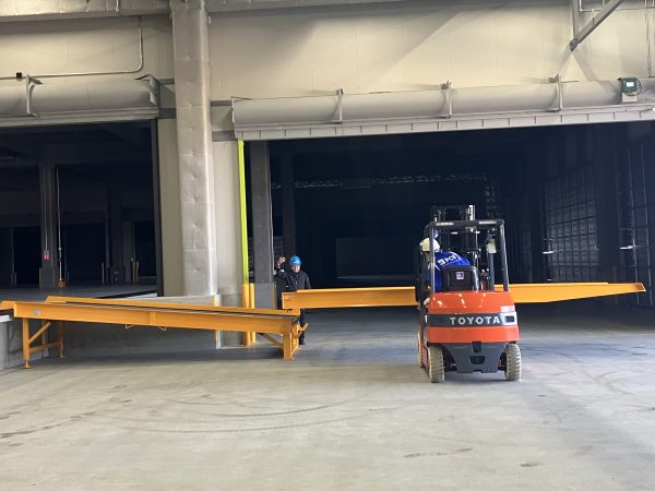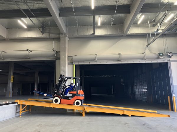 先日、某物流センター様にて、可動式プラットホームスロープの納品・設置を行いました!
