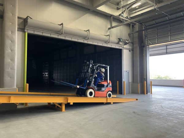設置後すぐに荷役テストを行い、問題なくスムーズに運用開始。現場の方からは、