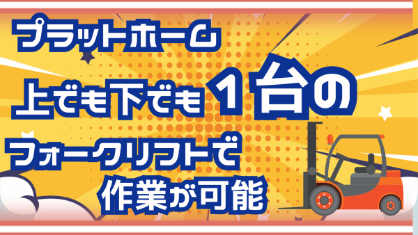 「プラットホームの上でも下でも、フォークリフト1台で荷役作業を完結させたい」 というご要望をいただいておりました。