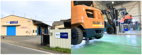 屋内倉庫には整然と並ぶバッテリーリーチ車がずらり。