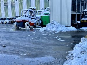 特にフォークリフトでは、滑り=事故につながるリスクが高いため、早めの冬対策が重要です。