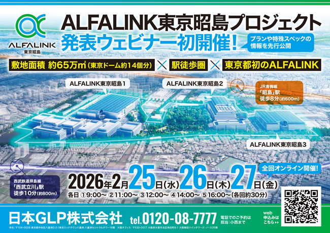【GLPウェビナー開催のご案内】ALFALINK「東京昭島」初公開