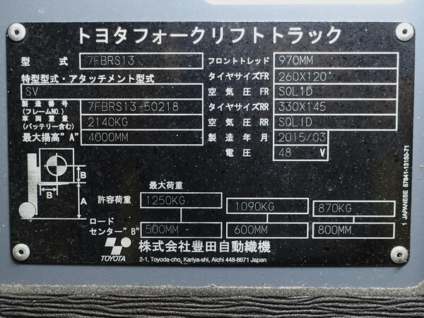 トヨタ 7FBRS13(1.3トン バッテリーリーチ) 展示拠点:テクニカルセンター