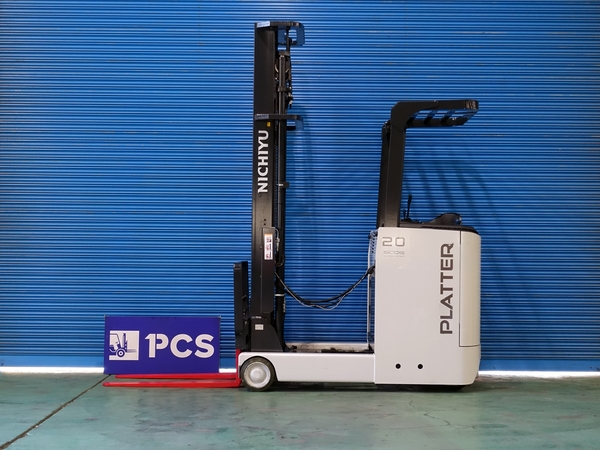 ニチユ製2.0tリーチフォークリフトのご紹介です。最大荷重は1900kg、最大揚高は4500mmのハイマスト、ツメの長さは1070mmとなります。